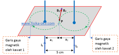 Besarnya induksi magnetik oleh kedua kawat adalah